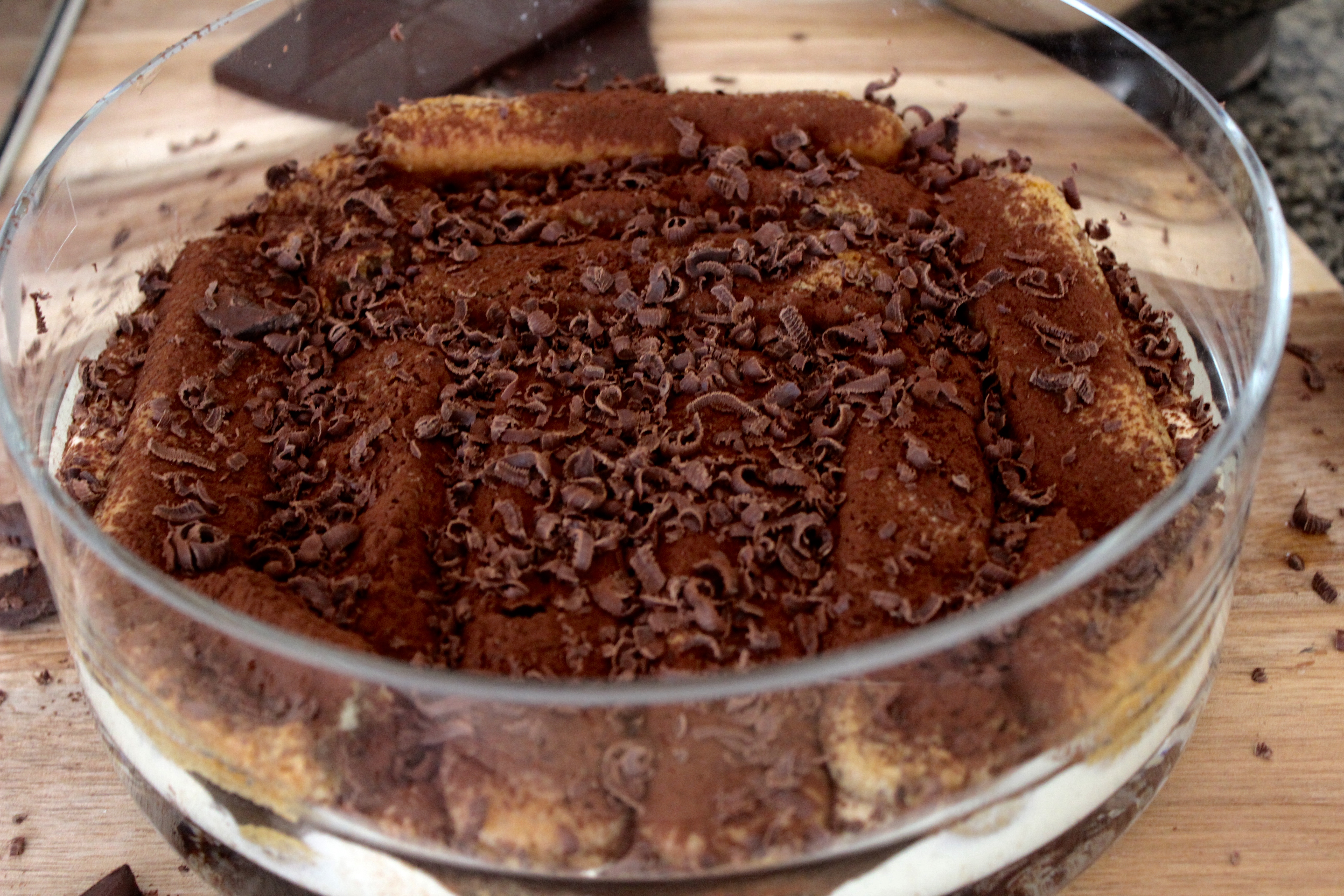 IMG_2417 December 16, 2017 5184 × 3456 Tiramisu Third layer of soaked savoiardi biscuits, covered in more chocolate.