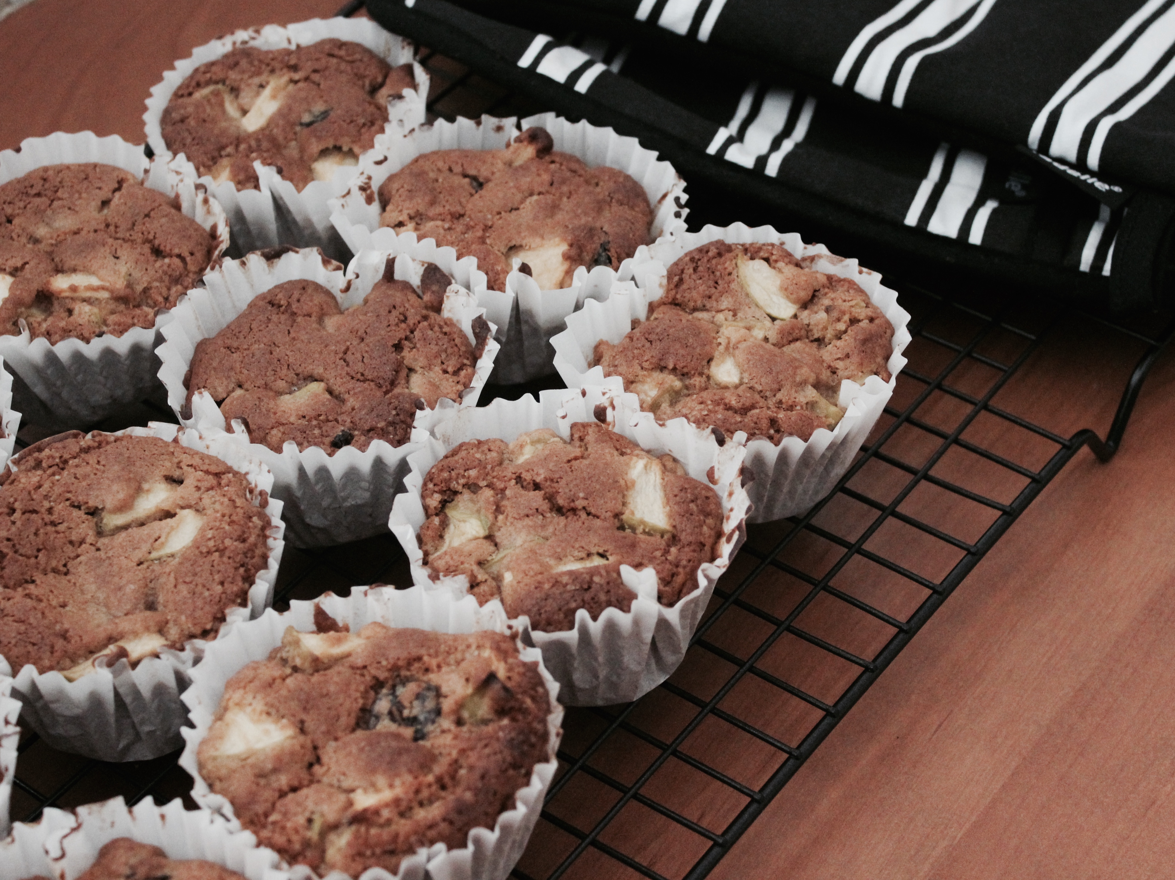 So my family have been a little obsessed with the combination of apples and cinnamon lately. This very simple recipe worked beautifully in a 20cm round cake tin as well as in muffin cases.